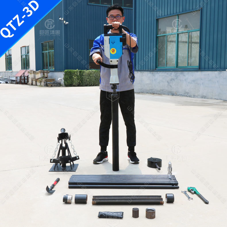 QTZ系列取土钻机是一种单人手持式轻便土壤取样钻机,主要适用于环境土壤调查、土壤结构描述等。该钻机依靠自身产生的高频冲击力将取土器打入土壤中,然后通过起拔器将取土器从土壤中提出。